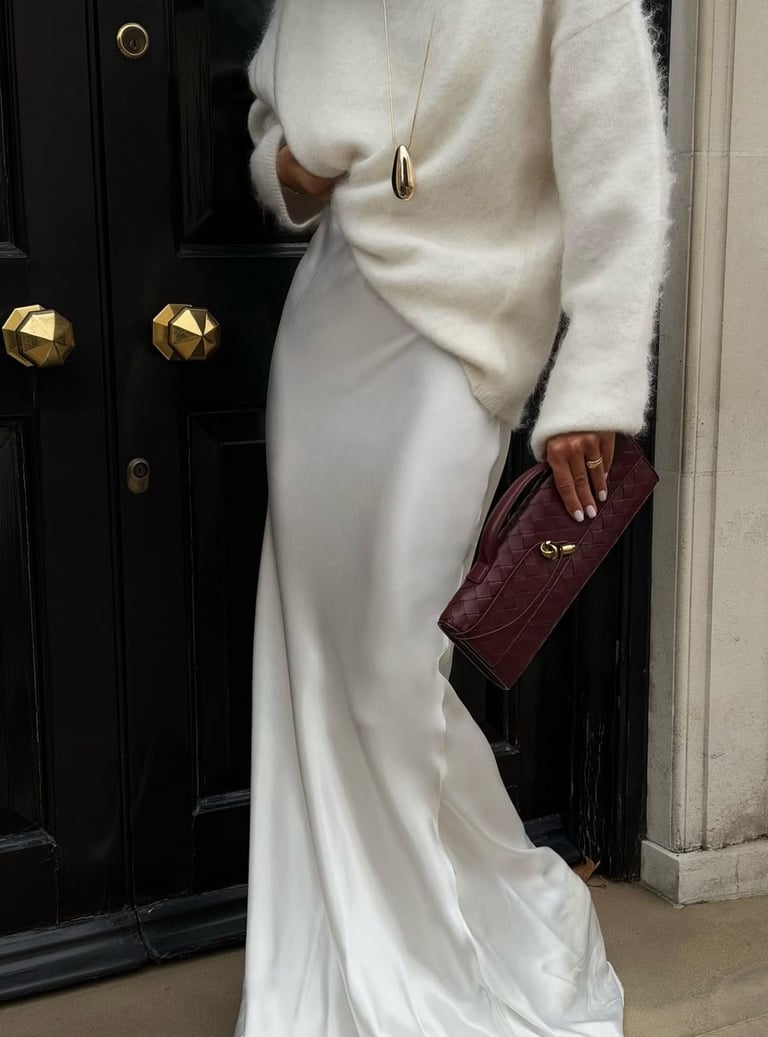 This winter, you can never go wrong with an elegant knit set in neutral tones such as beige, cream, or grey. Opt for a fitted top paired with a long skirt or stylish trousers. This type of ensemble looks effortlessly chic and works well for both casual outings and semi-formal events. To complete the look, style it with a pair of elegant boots, a structured handbag, and minimalistic jewelry for a polished finish. The overall appearance is cozy and feminine, exuding an expensive vibe that resonates with modern sophistication.